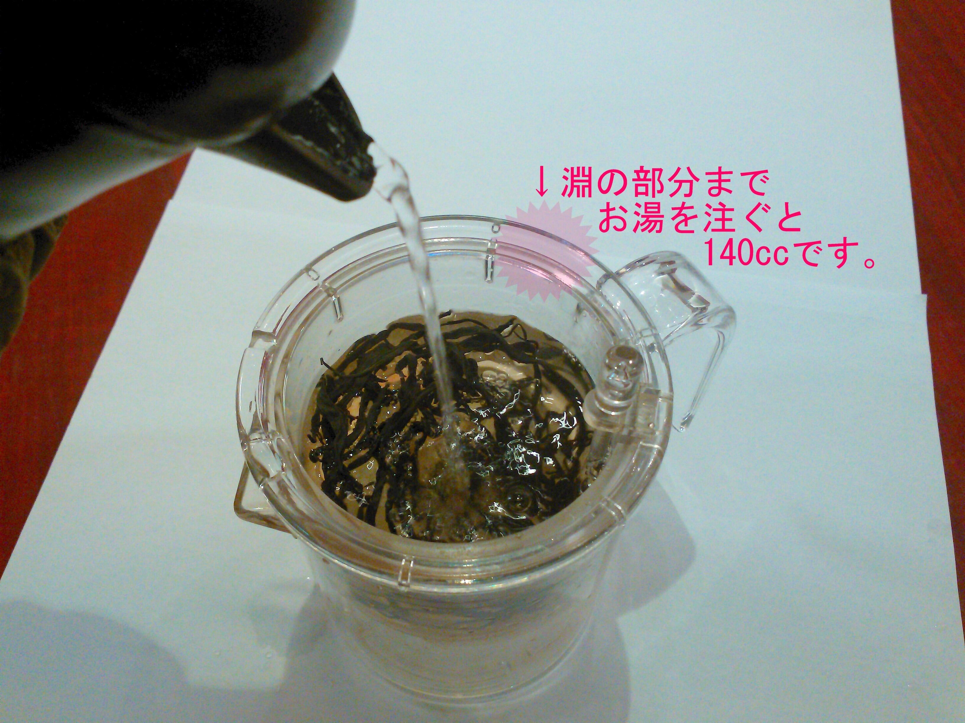 2.5g茶葉に140cc熱湯、5分間抽出がコンテストの標準です。コンテストでは専用のテイスティングカップが使われます。上部カップが140cc容量なので、このポットを使えば簡単にコンテスト気分が味わえます。